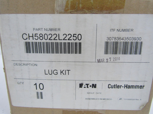 Upgrade your hardware supply with surplus Eaton CH58022L2250 Lugs, a smart choice for any warehouse. This product delivers solid functionality and enduring performance. Because it is surplus, you get...